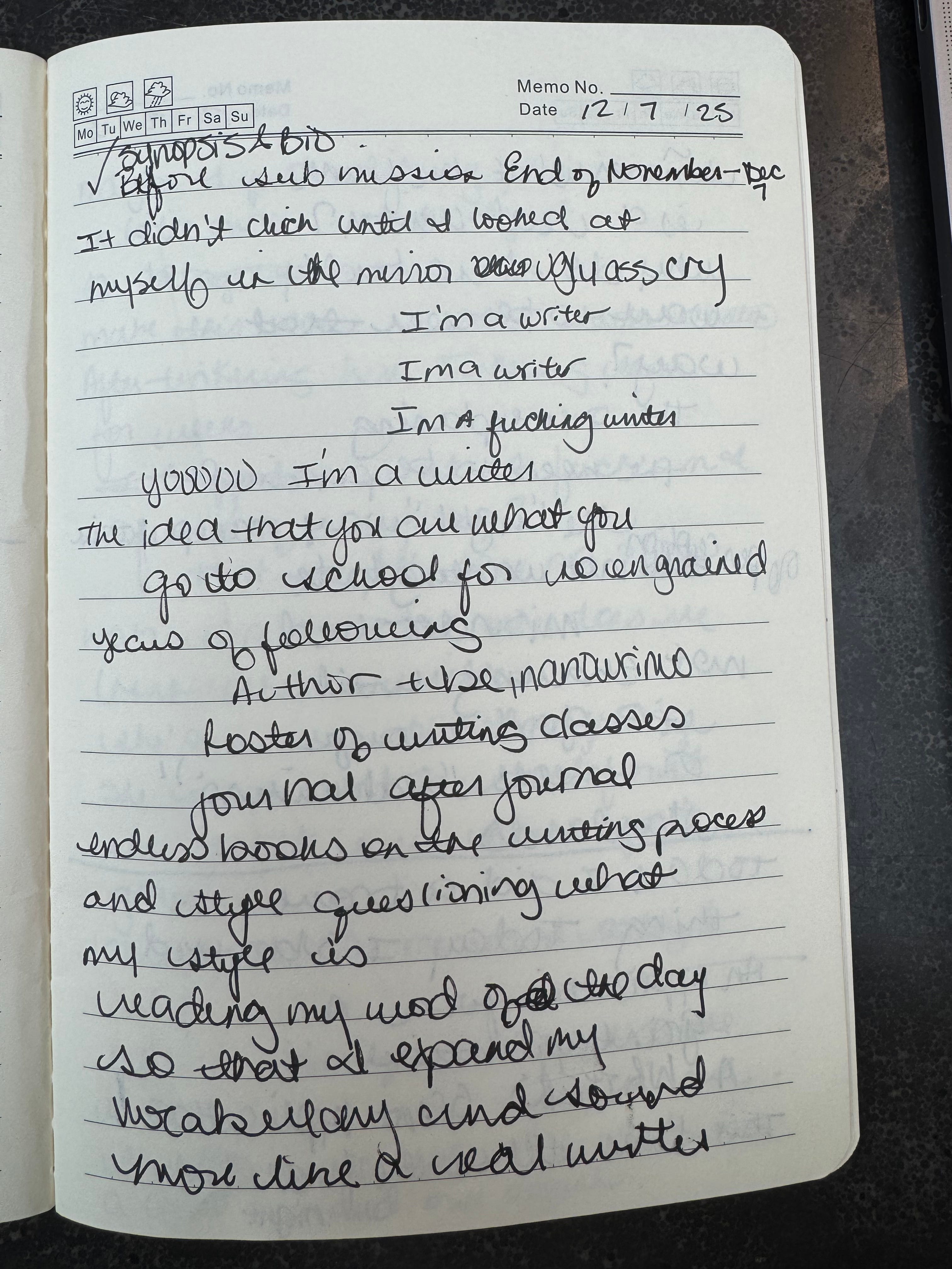 In fact I never thought of myself as an author at all - and maybe that’s redundant after already yapping about it for pages but I guess what I’m trying to say is that even after admitting, accepting that YES, I AM A FUCKING WRITER! It’s not about the titles